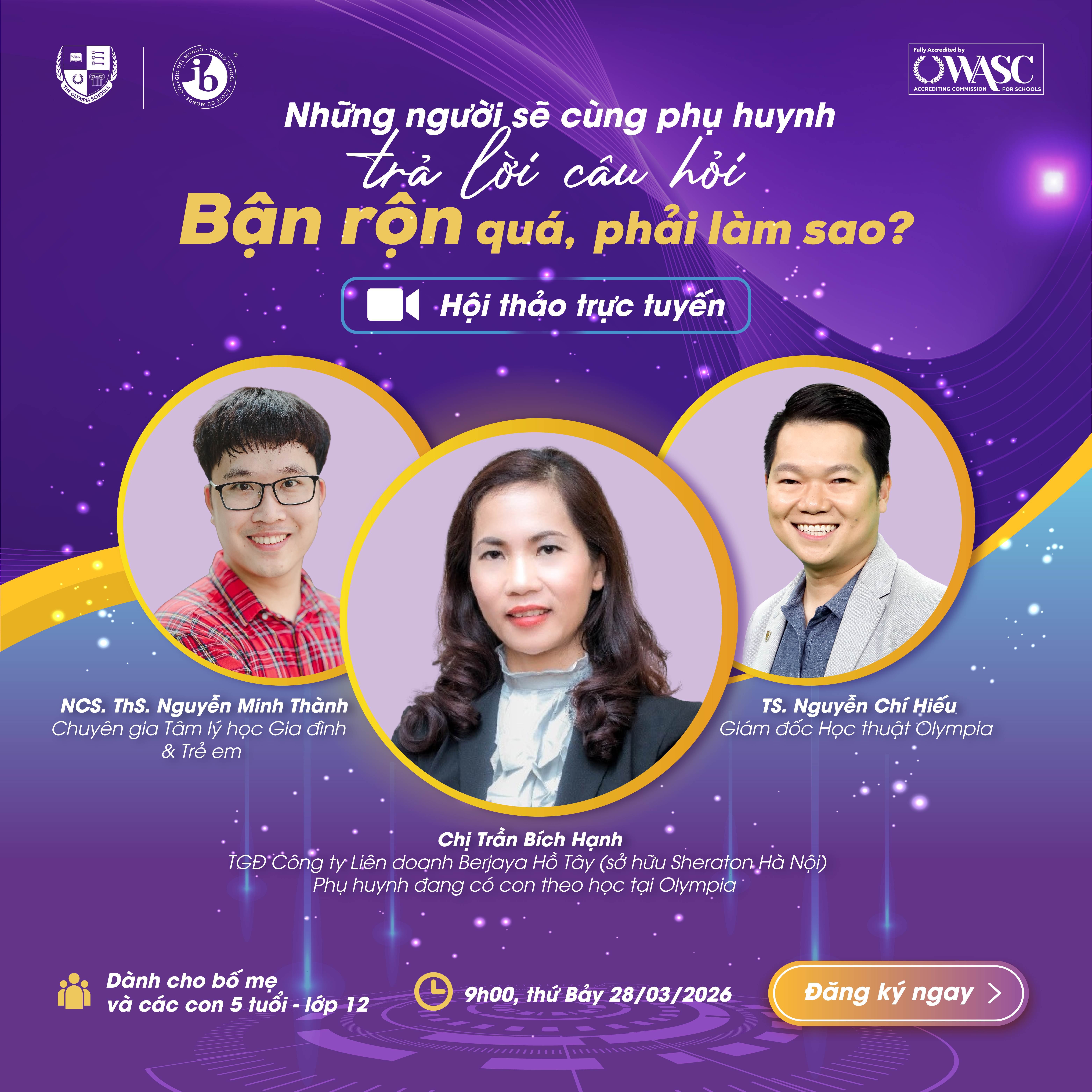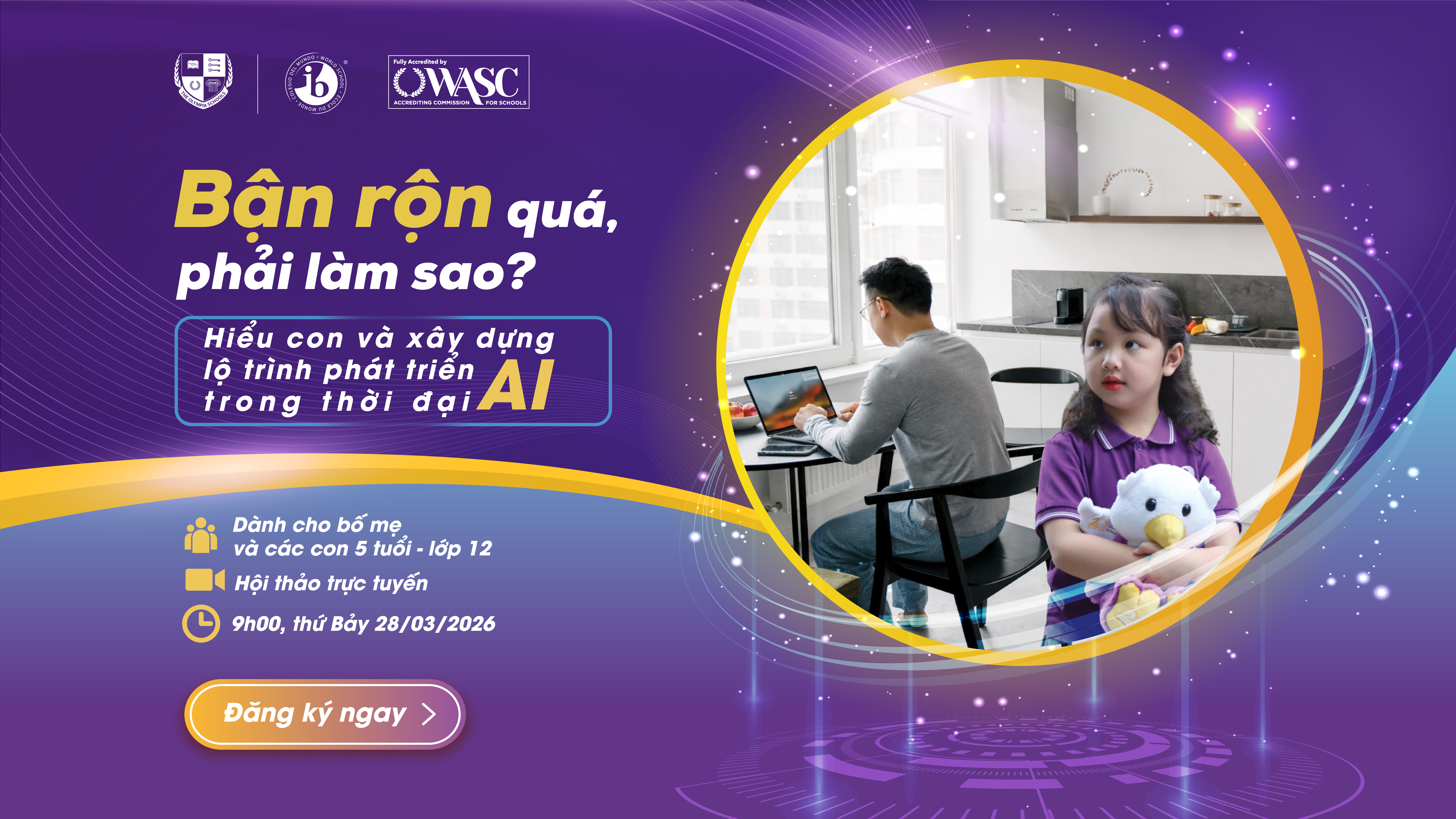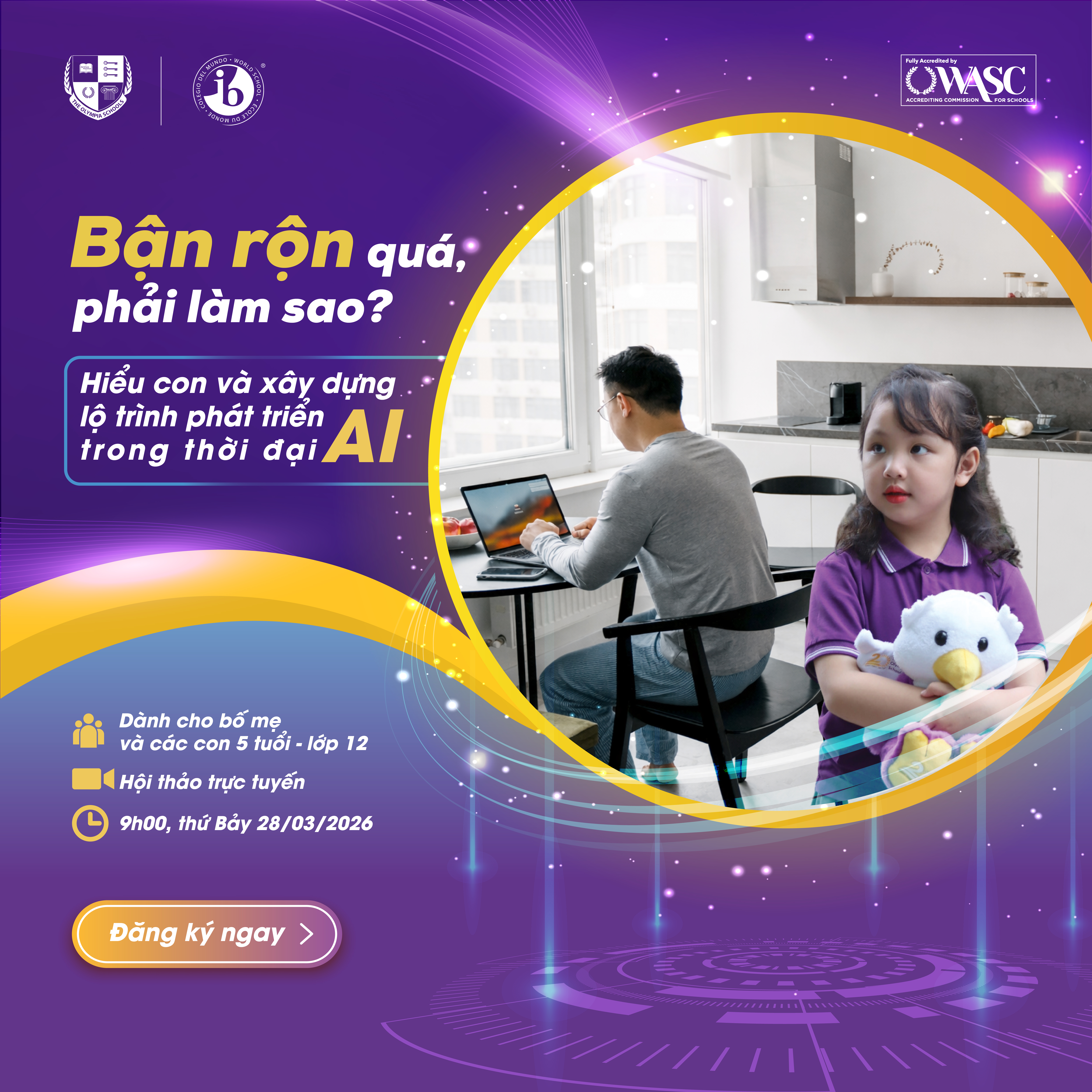 Thấu hiểu những trăn trở đó, Trường Liên cấp Song ngữ Olympia tổ chức webinar: Bận rộn quá, phải làm sao? Hiểu con và xây dựng lộ trình phát triển trong thời đại AI. Chương trình mang đến một cách tiếp cận khác khi không phải dành thêm thời gian, mà là đồng hành đúng cách, vào đúng thời điểm.