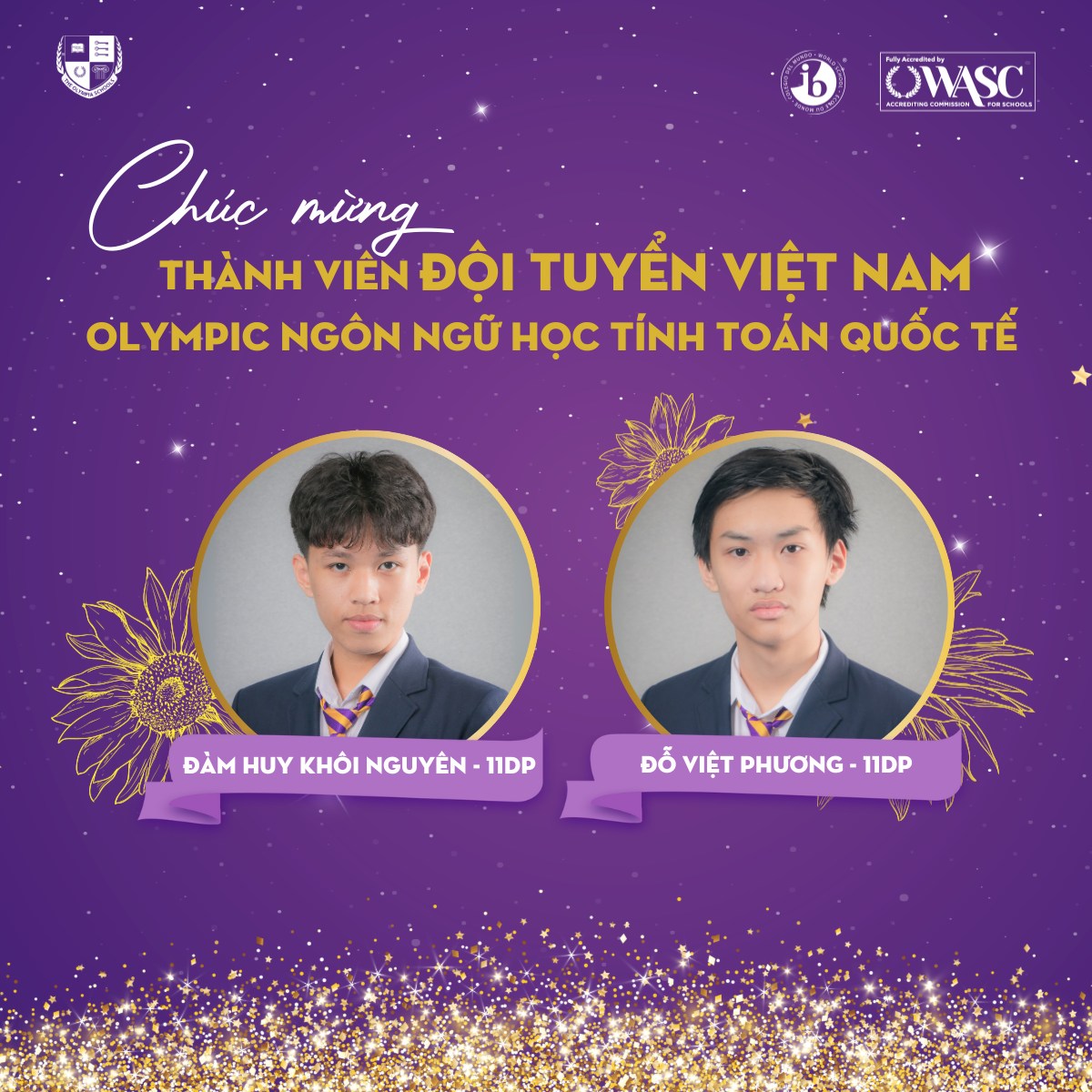 Chúc mừng Olympian Đàm Huy Khôi Nguyên và Đỗ Việt Phương (cùng học lớp 11DP) đã trở thành 2 trong 4 gương mặt đại diện Việt Nam tham dự Olympic Ngôn ngữ học Tính toán Quốc tế (International Linguistics Olympiad - IOL) - một trong những kỳ thi trí tuệ hấp dẫn và uy tín nhất thế giới dành cho học sinh THPT.