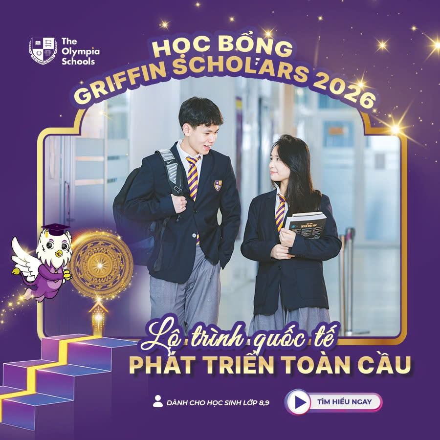 Học bổng Griffin Seniors mang đến cơ hội tiếp cận chương trình THPT Song ngữ tại The Olympia Schools - trường song ngữ hàng đầu Hà Nội với lộ trình giáo dục cá nhân hóa và toàn diện. Với mức hỗ trợ tối đa 100% học phí, chương trình đồng hành cùng học sinh trong giai đoạn quan trọng nhất, chuẩn bị vững chắc cho việc tiếp tục học tập tại các trường đại học trong nước và quốc tế.