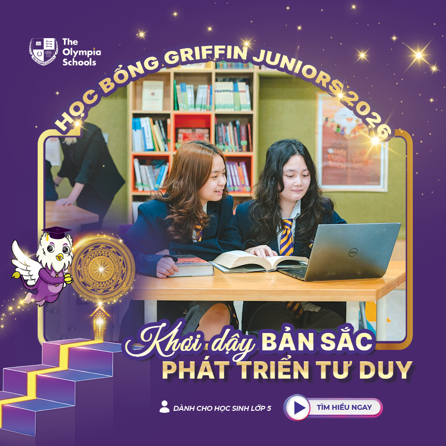 Đây là năm thứ 5 Olympia tổ chức chương trình học bổng Griffin Juniors, mở ra cơ hội tỏa sáng cho các học sinh khối 5 trên địa bàn Hà Nội. Chương trình học bổng cam kết đồng hành cùng học sinh trong suốt 7 năm học từ lớp 6 đến lớp 12, với mức hỗ trợ tối đa 100% học phí, trang bị cho học sinh nền tảng kiến thức, kỹ năng và tư duy để phát triển trong môi trường học thuật toàn cầu.