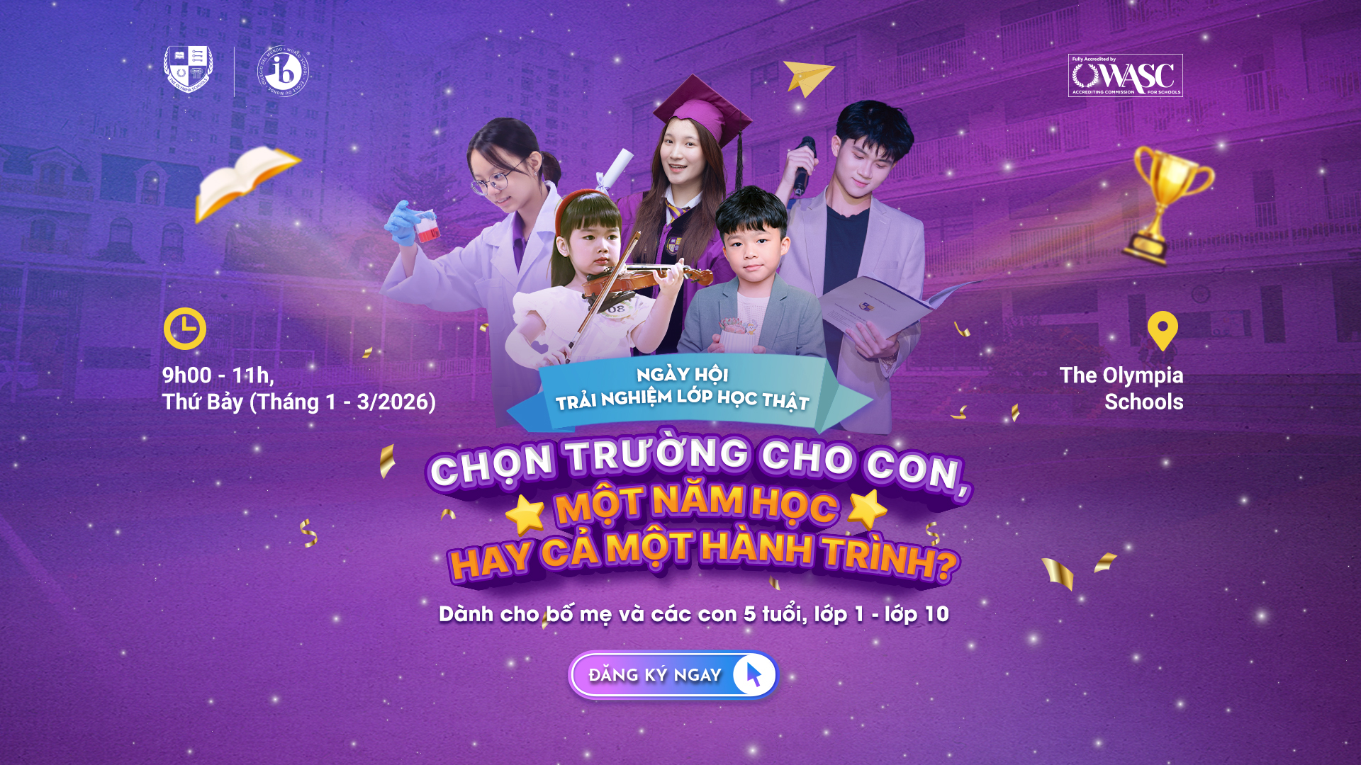 Tại The Olympia Schools, mỗi trải nghiệm đều được thiết kế để mở ra sự thấu hiểu, vun bồi niềm tin và khẳng định rằng: khi được học đúng cách, đúng thời điểm và có sự đồng hành phù hợp, mỗi học sinh đều có thể phát triển theo cách riêng của mình. Olympia trân trọng kính mời quý phụ huynh và các con cùng tham dự Ngày hội Trải nghiệm | Giải mã hành trình trưởng thành – nơi hành trình tương lai bắt đầu từ sự hiểu và tin hôm nay.