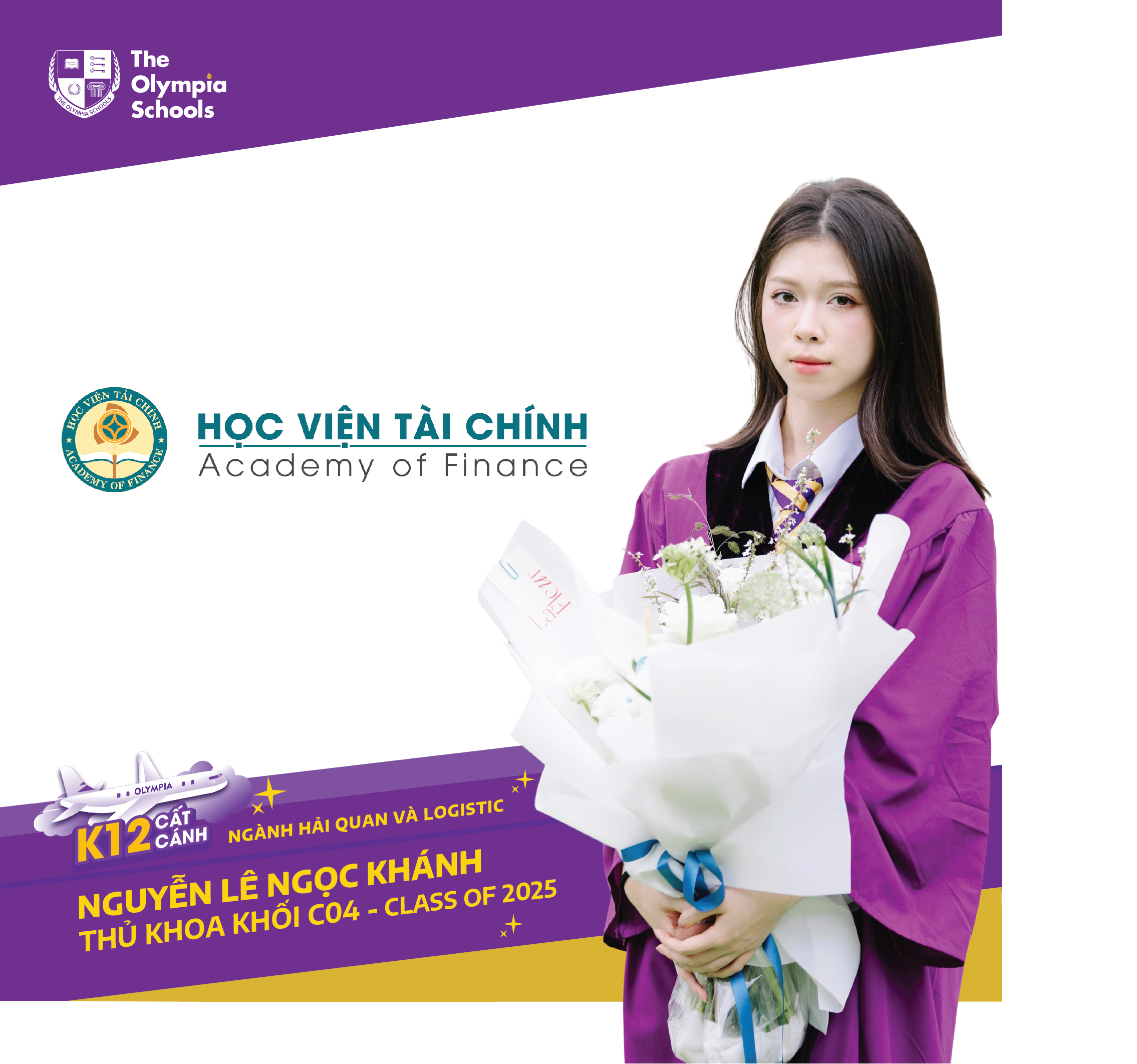 Olympia là nơi thầy cô luôn đặc biệt quan tâm và đồng hành cùng em, từ học tập đến cảm xúc. Nhờ vậy, em có được bệ đỡ vững chắc để tự tin bước tới mục tiêu của mình”. Đó là chia sẻ của Olympian Nguyễn Lê Ngọc Khánh (khóa tốt nghiệp 2025), vừa trúng tuyển ngành Hải quan và Logistics của Học viện Tài chính và đủ điểm vào khoa cao nhất của Đại học Thương mại.