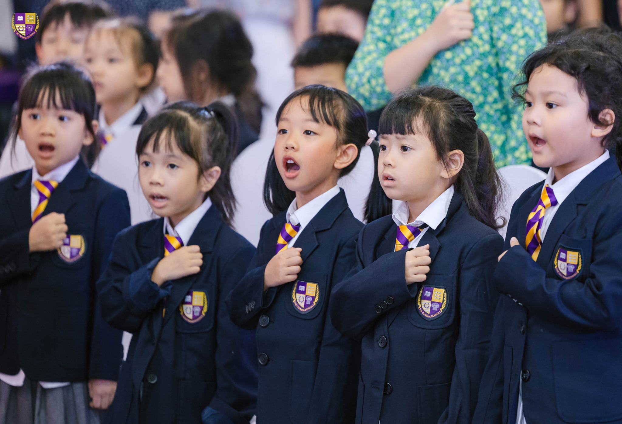 Mỗi thứ Hai và thứ Ba hàng tuần, Olympians các cấp Tiểu học, THCS và THPT đều nghiêm trang đặt tay lên ngực trái, đồng thanh hát vang Quốc ca dưới lá cờ đỏ sao vàng. Không phải tiếng hát phát ra từ loa, mà là tiếng ca tự hào của chính các bạn học sinh. Nhiều bố mẹ từng tham dự lễ Tựu trường hay Bế giảng của Olympia, hẳn vẫn ấn tượng với khoảnh khắc này!