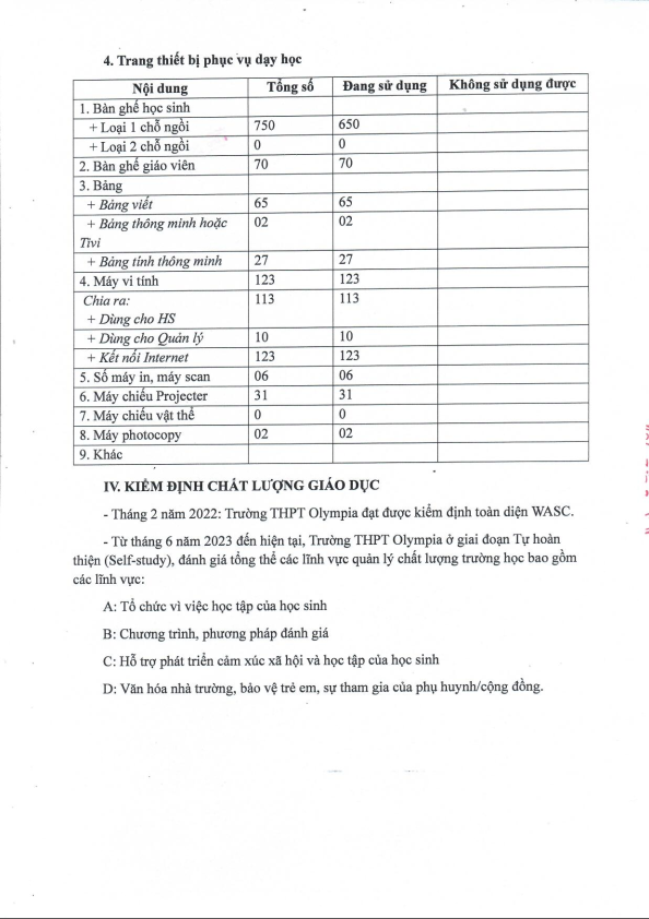 Olympia thực hiện quy định 3 công khai theo Thông tư số 09/2024/TT-BGDĐT