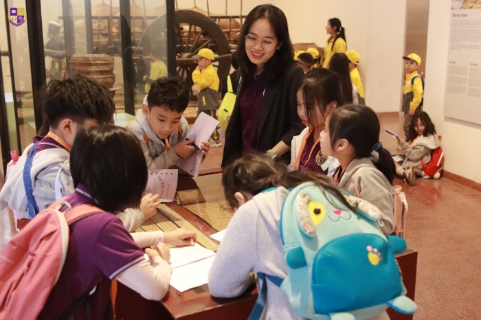 Từ câu hỏi ấy, dự án liên môn Tiếng Việt - Mỹ thuật - Âm nhạc - LiFE mang tên “Sắc Việt trong em” đã được triển khai dành cho Olympians khối 2. Không chỉ dừng lại ở những tiết học trên lớp, dự án mở ra một hành trình trải nghiệm, nơi các bạn nhỏ được quan sát, lắng nghe và cảm nhận văn hóa dân tộc bằng tất cả sự tò mò và háo hức của mình. Một dấu ấn đặc biệt của hành trình ấy là chuyến tham quan tại Bảo tàng Dân tộc học Việt Nam. Những ánh mắt chăm chú, những câu hỏi hồn nhiên và nụ cười rạng rỡ cho thấy “Sắc Việt” đang dần hiện lên thật sống động trong từng trải nghiệm.